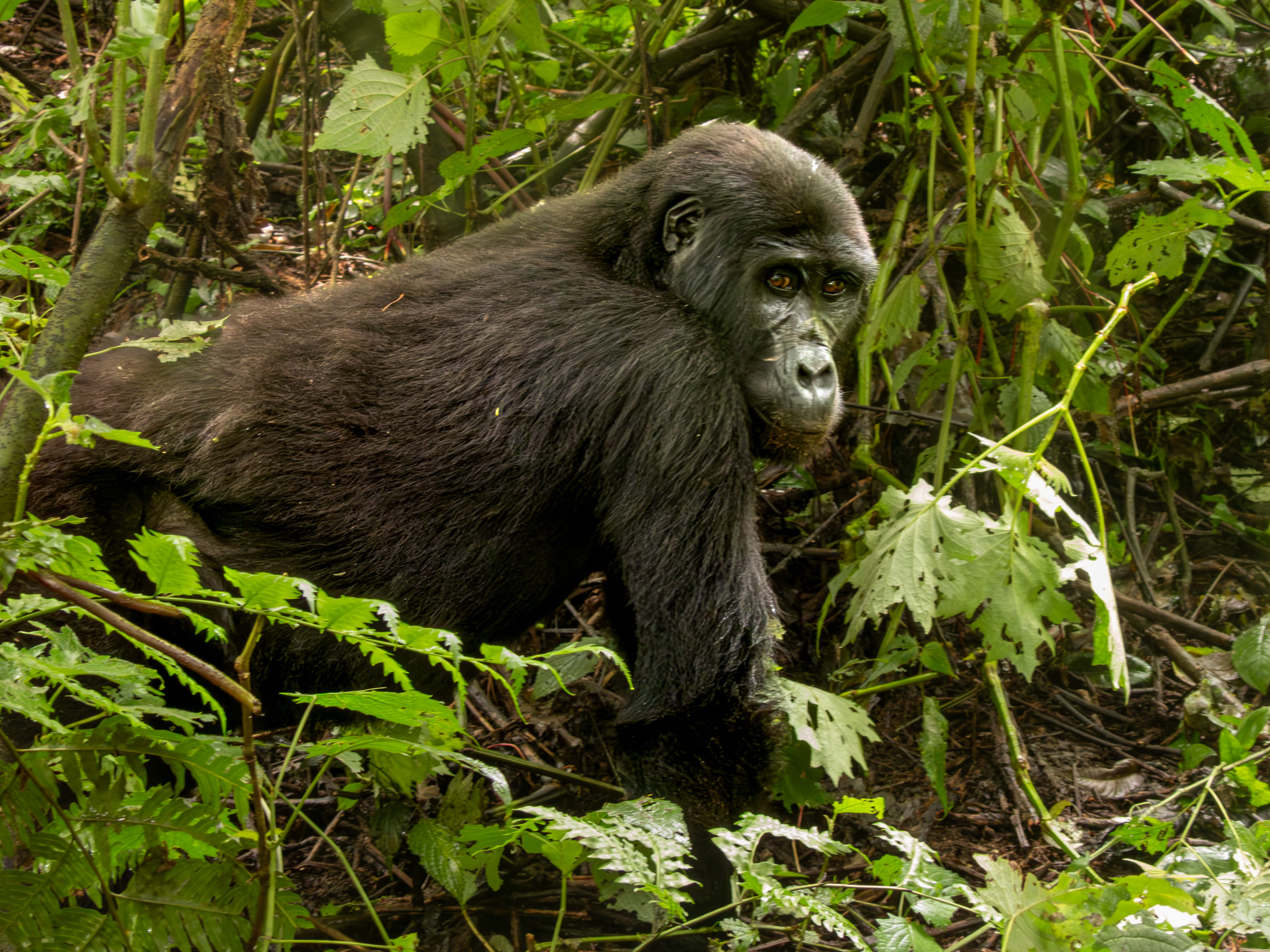 Bwindi Impenetrable National Park is where you arrive for Mountain Gorillas. Trekking upto the Mountain Gorilla family in thickest of thick rainforest was an experience in itself, but being around for next 1 hour around a Gorilla family of 8 individuals was an experience that will be etched forever in our memories.